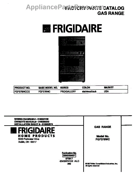 Parts for Frigidaire FGF378WCCG: 01 - Cover Parts