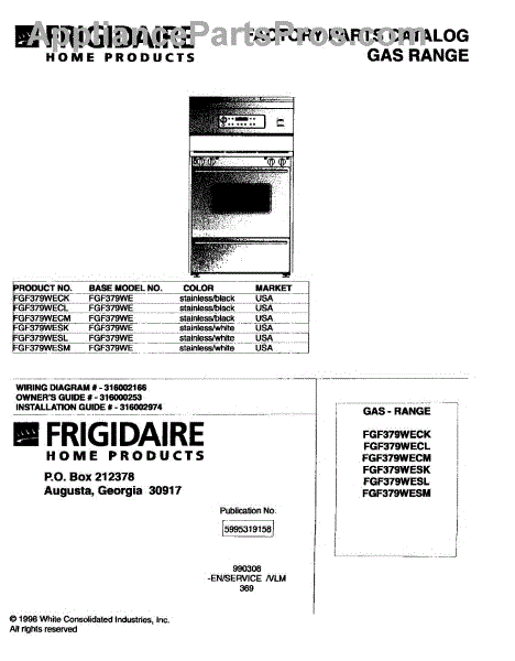 Parts for Frigidaire FGF379WECL: 01 - Cover Parts