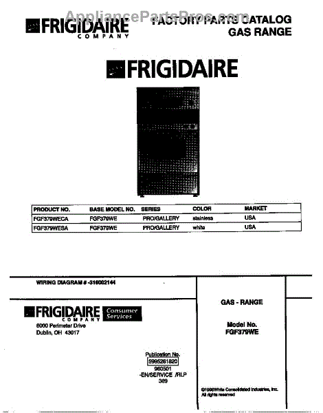 Parts for Frigidaire FGF379WESA: 01 - Cover Parts