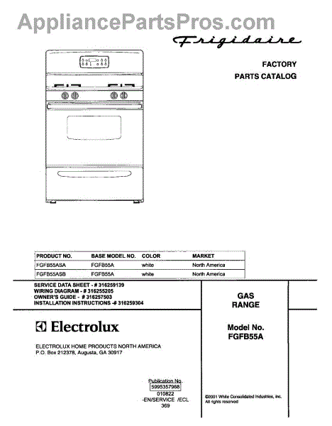 Parts for Frigidaire FGFB55ASB: 01 - Cover Parts