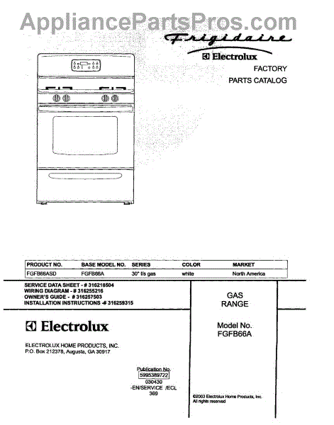 Parts for Frigidaire FGFB66ASD: 01 - Cover Parts