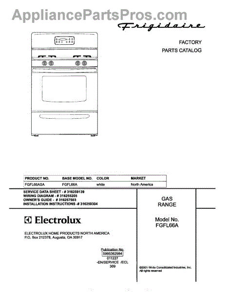 Parts for Frigidaire FGFL66ASA: 01 - Cover Parts