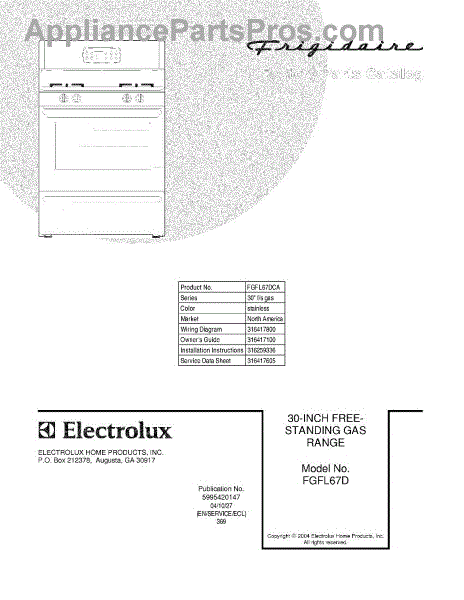 Parts for Frigidaire FGFL67DCA: 01 - Cover Parts