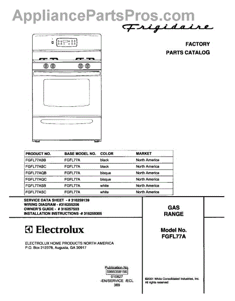 Parts for Frigidaire FGFL77AQC: 01 - Cover Parts