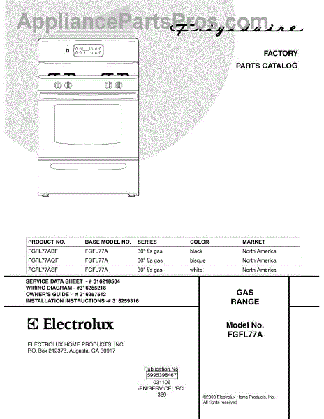 Parts for Frigidaire FGFL77ASF: 01 - Cover Parts