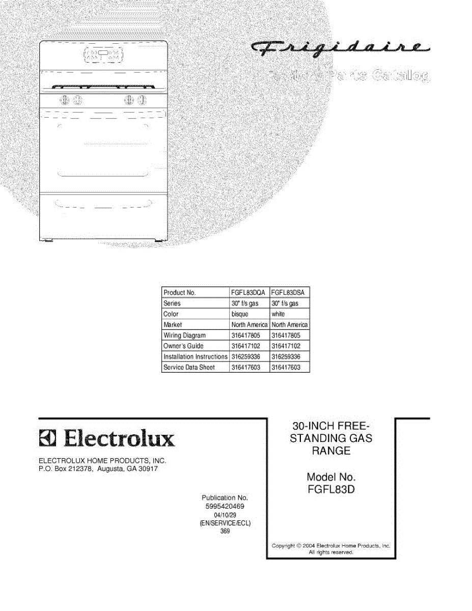 Parts for Frigidaire FGFL83DSA: 01 - Cover Parts