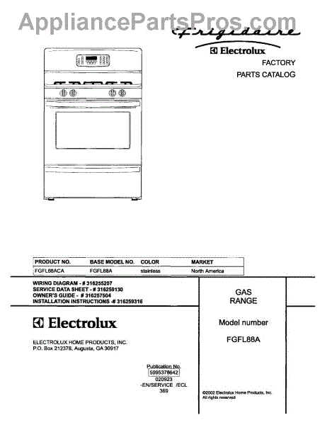 Parts for Frigidaire FGFL88ACA: 01 - Cover Parts