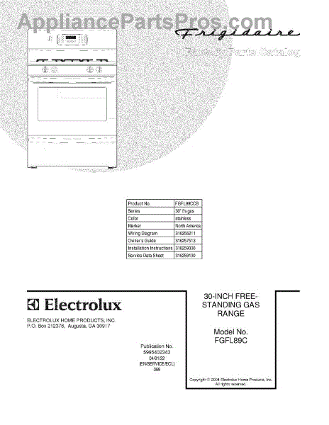 Parts for Frigidaire FGFL89CCB: 01 - Cover Parts