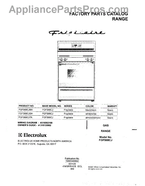 Parts for Frigidaire FGFS68CJBA: 01 - Cover Parts