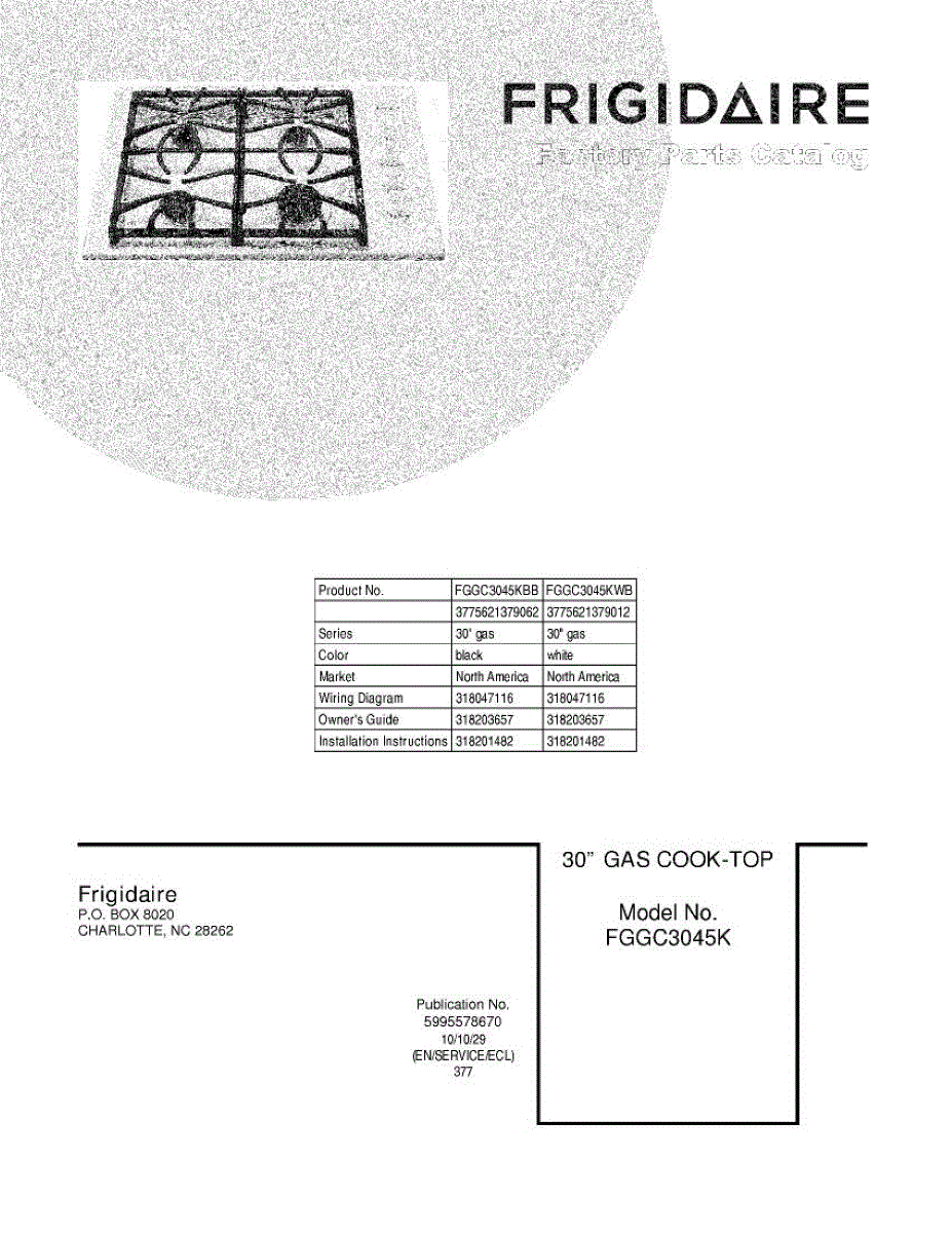 Parts for Frigidaire FGGC3045KWB: 01 - Cover Parts