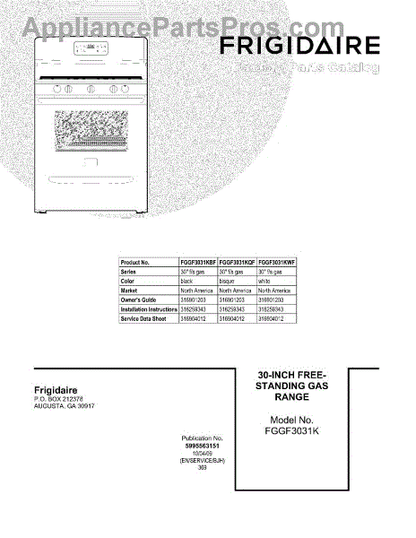 Parts for Frigidaire FGGF3031KBF: 01 - Cover Parts