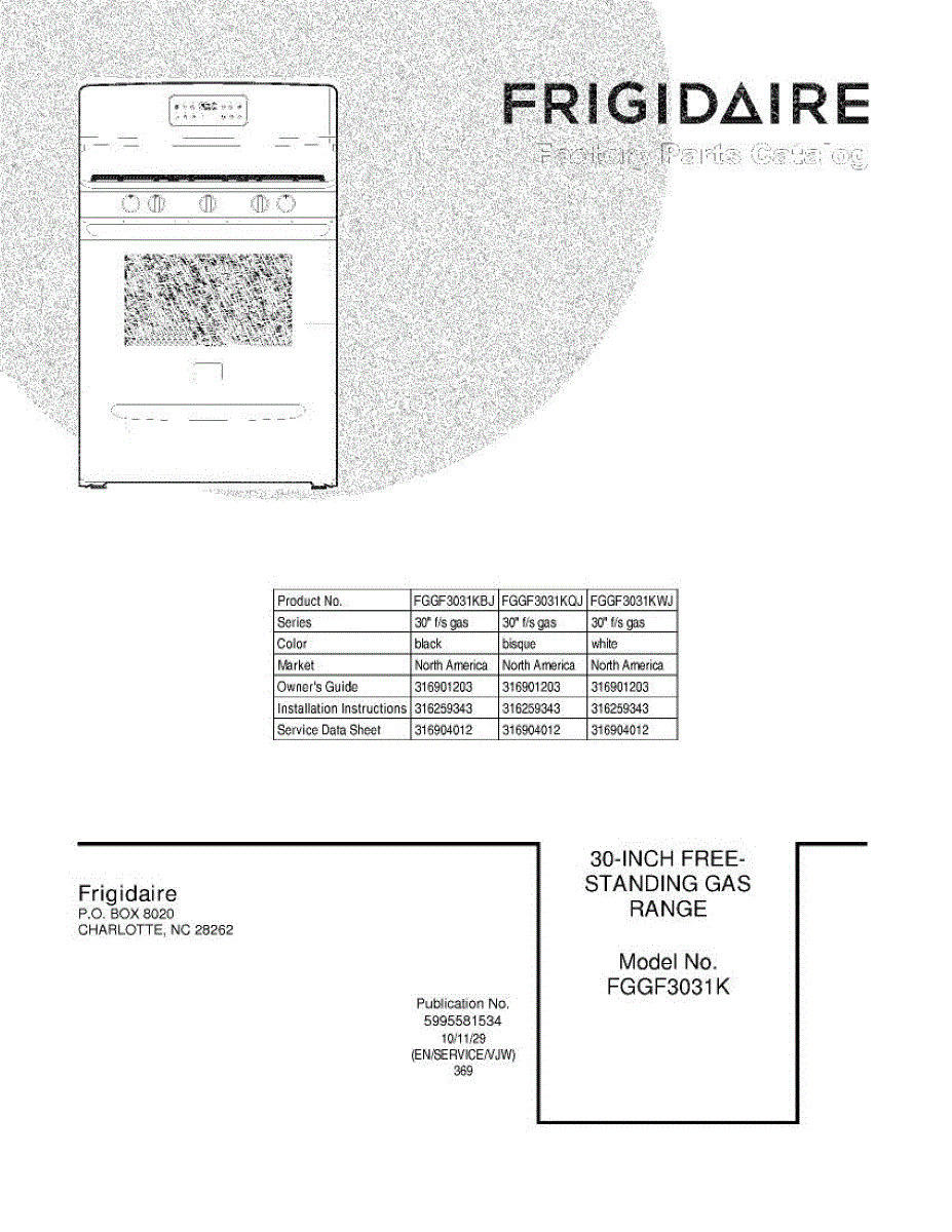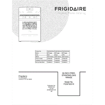 Parts for Frigidaire FGGF3031KBJ: 01 - Cover Parts