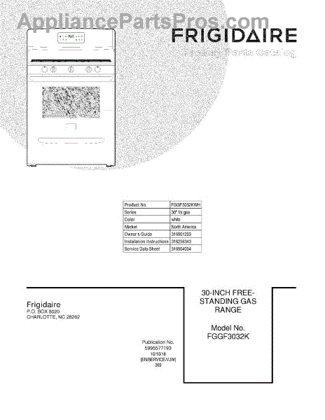 Parts for Frigidaire FGGF3032KWH: 01 - Cover Parts