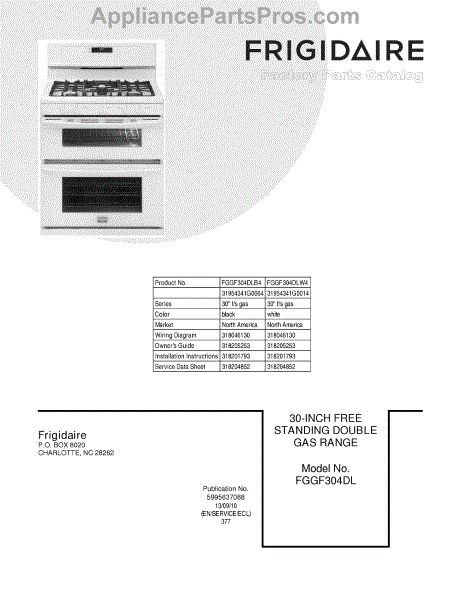 Parts for Frigidaire FGGF304DLB4: 01 - Cover Parts
