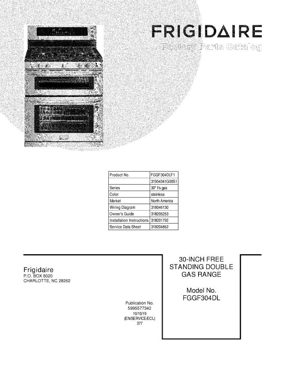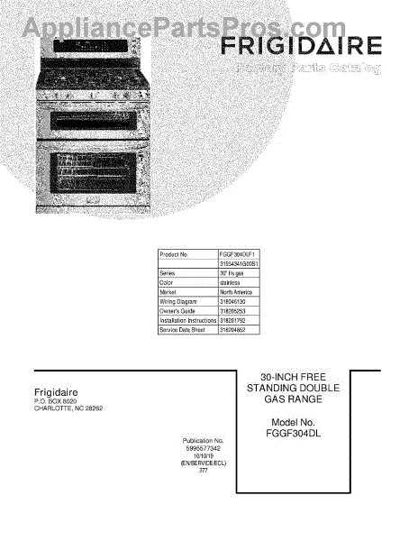 Parts for Frigidaire FGGF304DLF1: 01 - Cover Parts