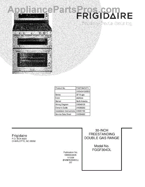 Parts for Frigidaire FGGF304DLF3: 01 - Cover Parts
