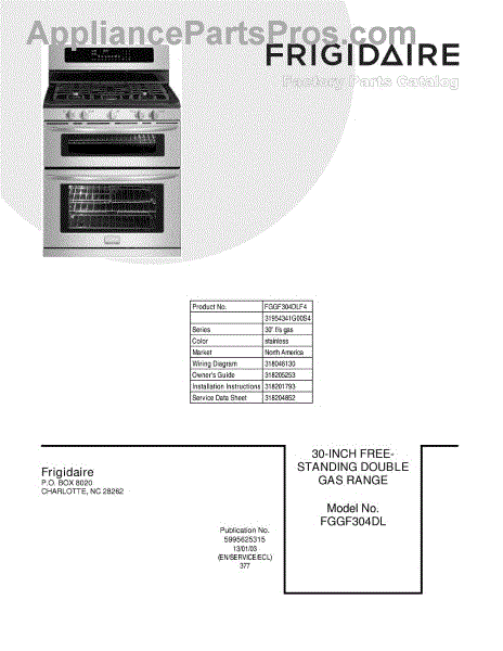 Parts for Frigidaire FGGF304DLF4: 01 - Cover Parts