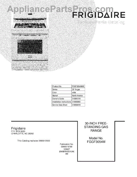 Parts for Frigidaire FGGF3054MWC: 01 - Cover Parts