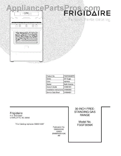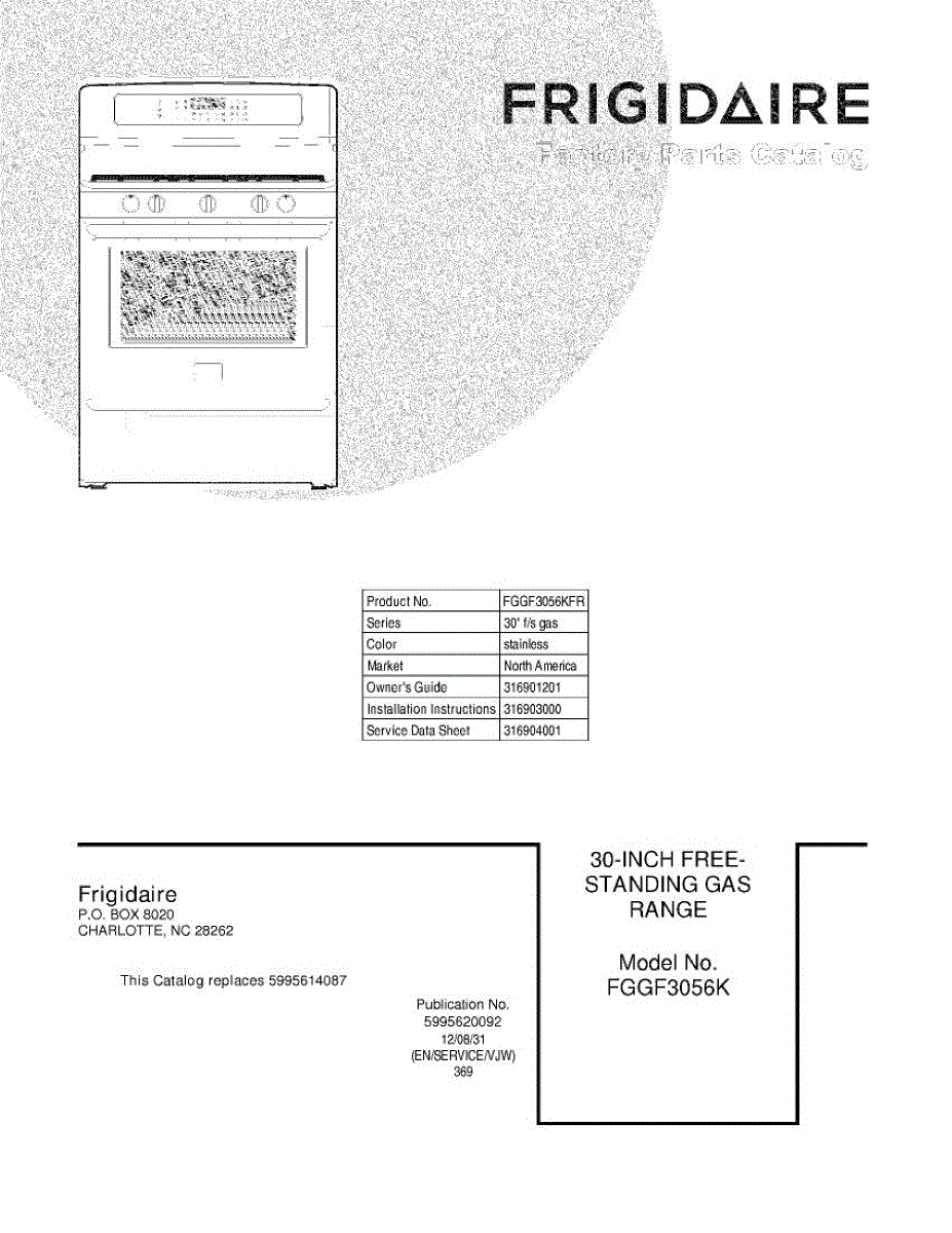 Parts for Frigidaire FGGF3056KFR: 01 - Cover Parts