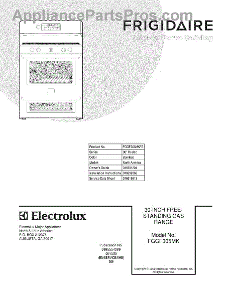 Parts for Frigidaire FGGF305MKFB: 01 - Cover Parts