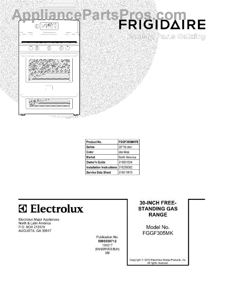 Parts for Frigidaire FGGF305MKFE: 01 - Cover Parts