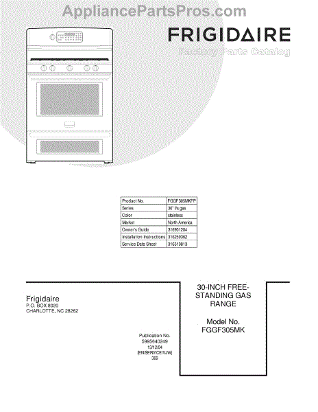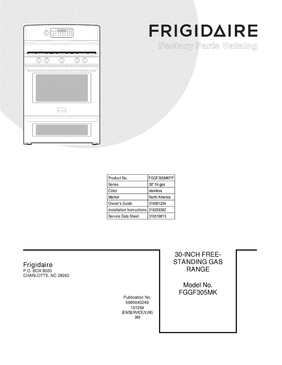 Parts for Frigidaire FGGF305MKFP: 01 - Cover Parts