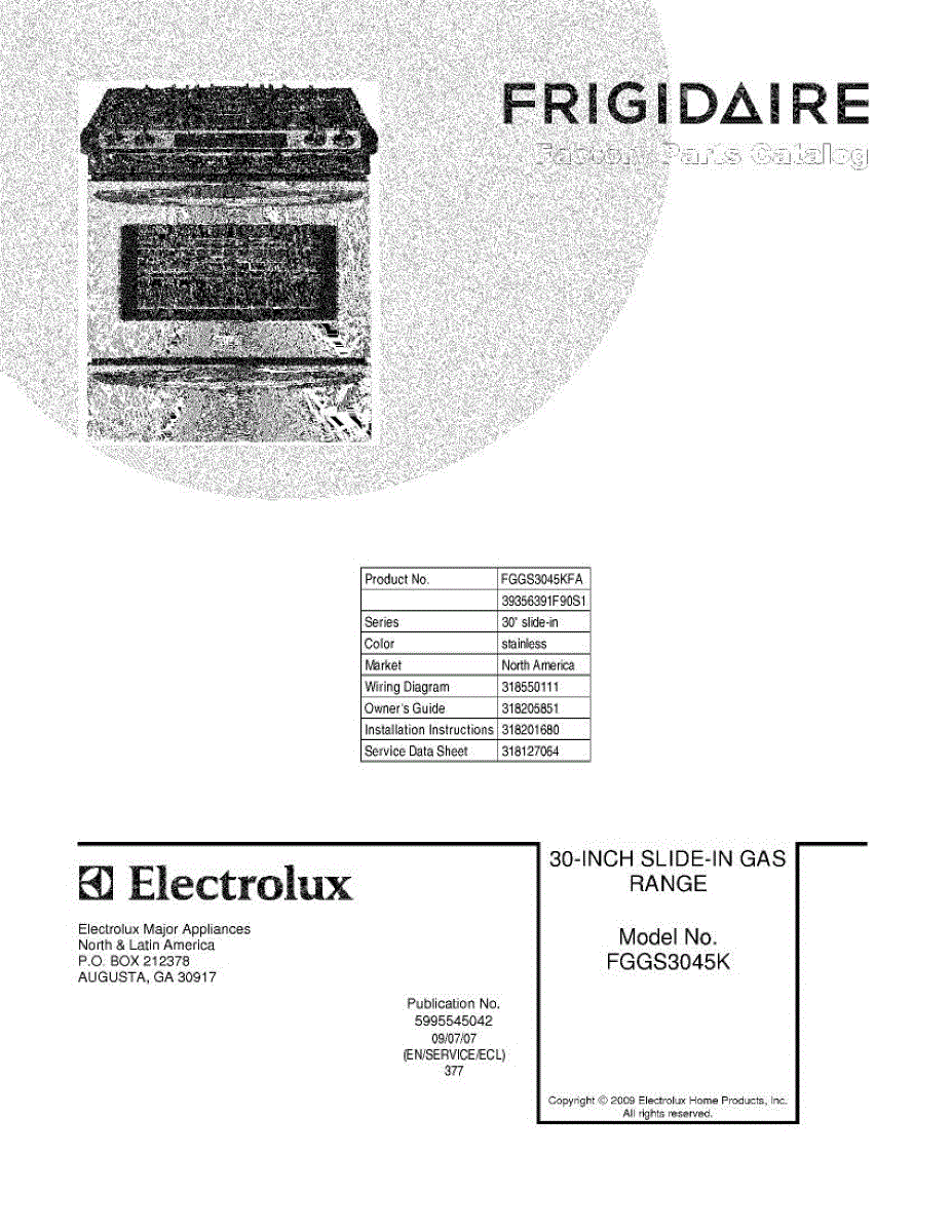 Parts for Frigidaire FGGS3045KFA: 01 - Cover Parts