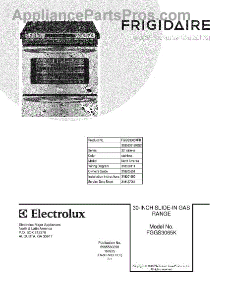 Parts for Frigidaire FGGS3065KFB: 01 - Cover Parts