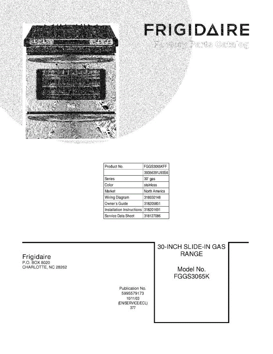 Parts for Frigidaire FGGS3065KFF: 01 - Cover Parts