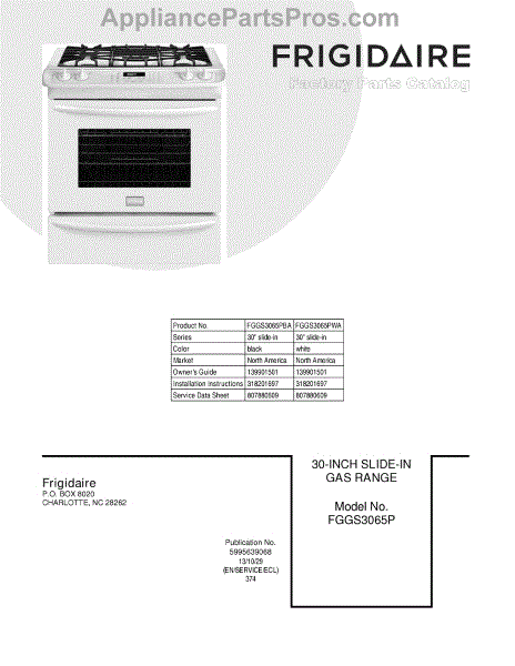 Parts for Frigidaire FGGS3065PBA: 01 - Cover Parts