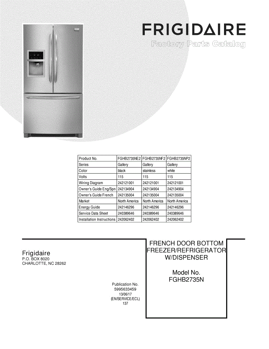 Parts for Frigidaire FGHB2735NF2: 01 - Cover Parts