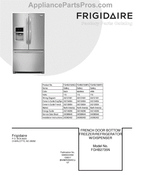 Parts for Frigidaire FGHB2735NP2: 01 - Cover Parts