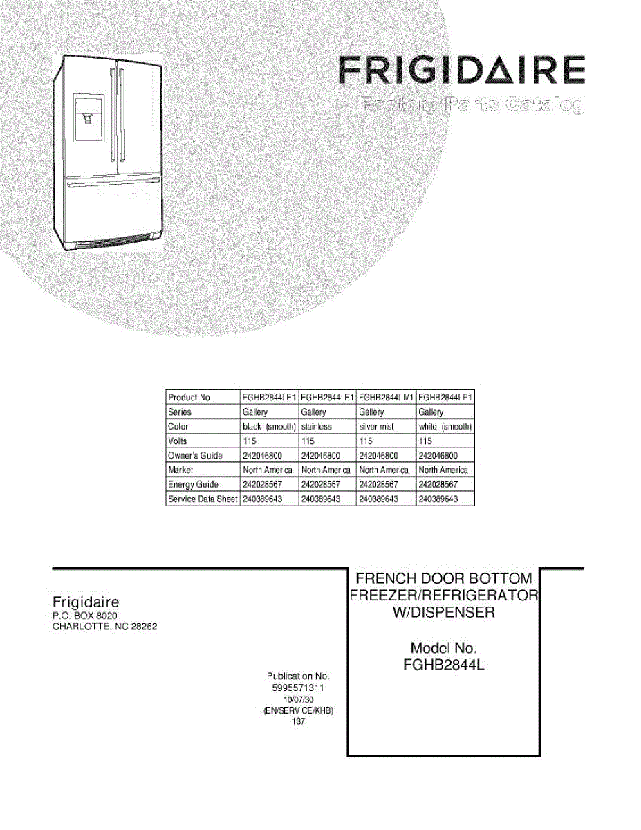Parts for Frigidaire FGHB2844LM1: 01 - Cover Parts