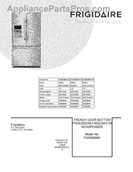 Parts for Frigidaire FGHB2869LE6: 01 - Cover Parts
