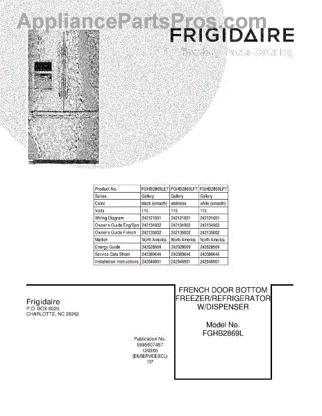 Parts for Frigidaire FGHB2869LE7: 01 - Cover Parts