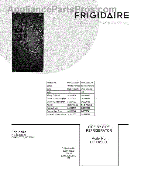 Parts for Frigidaire FGHC2335LE4: 01 - Cover Parts