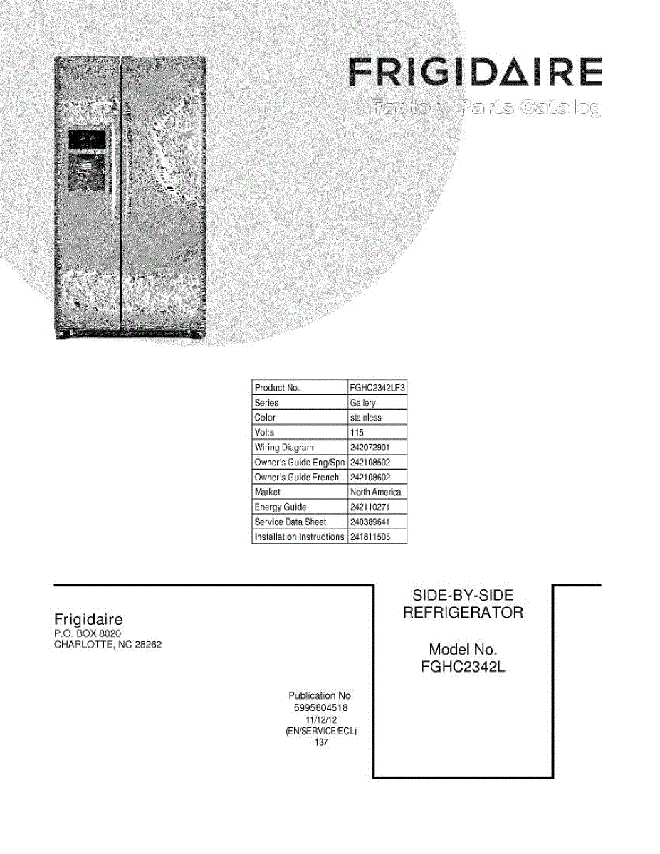 Parts for Frigidaire FGHC2342LF3: 01 - Cover Parts