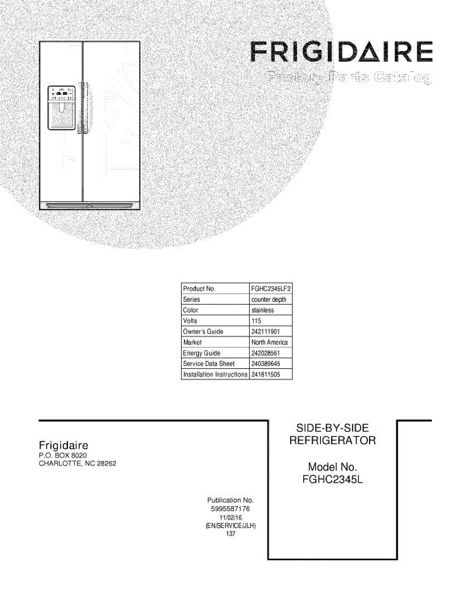 Parts for Frigidaire FGHC2345LF2: 01 - Cover Parts