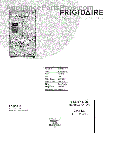 Parts for Frigidaire FGHC2345LF4: 01 - Cover Parts
