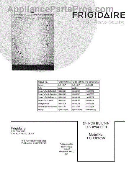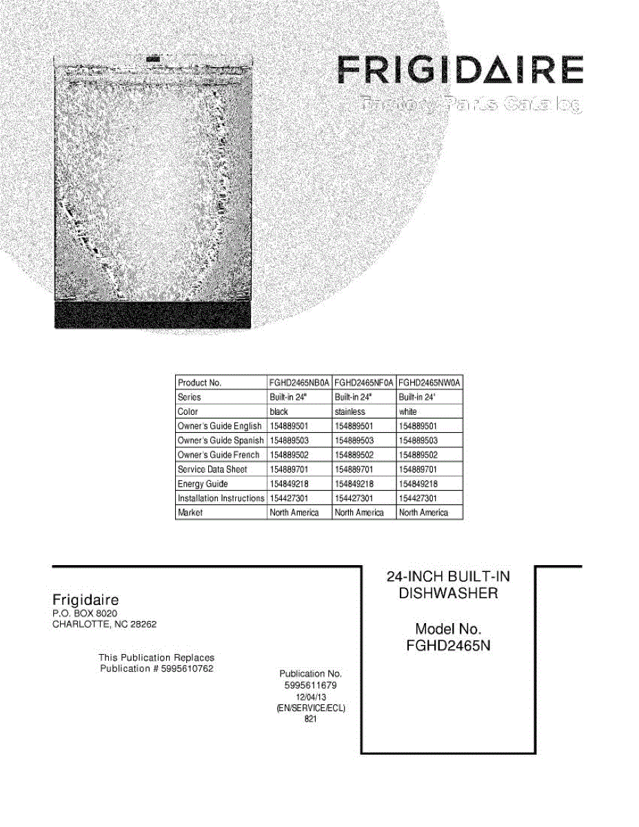 Parts for Frigidaire FGHD2465NW0A: 01 - Cover Parts