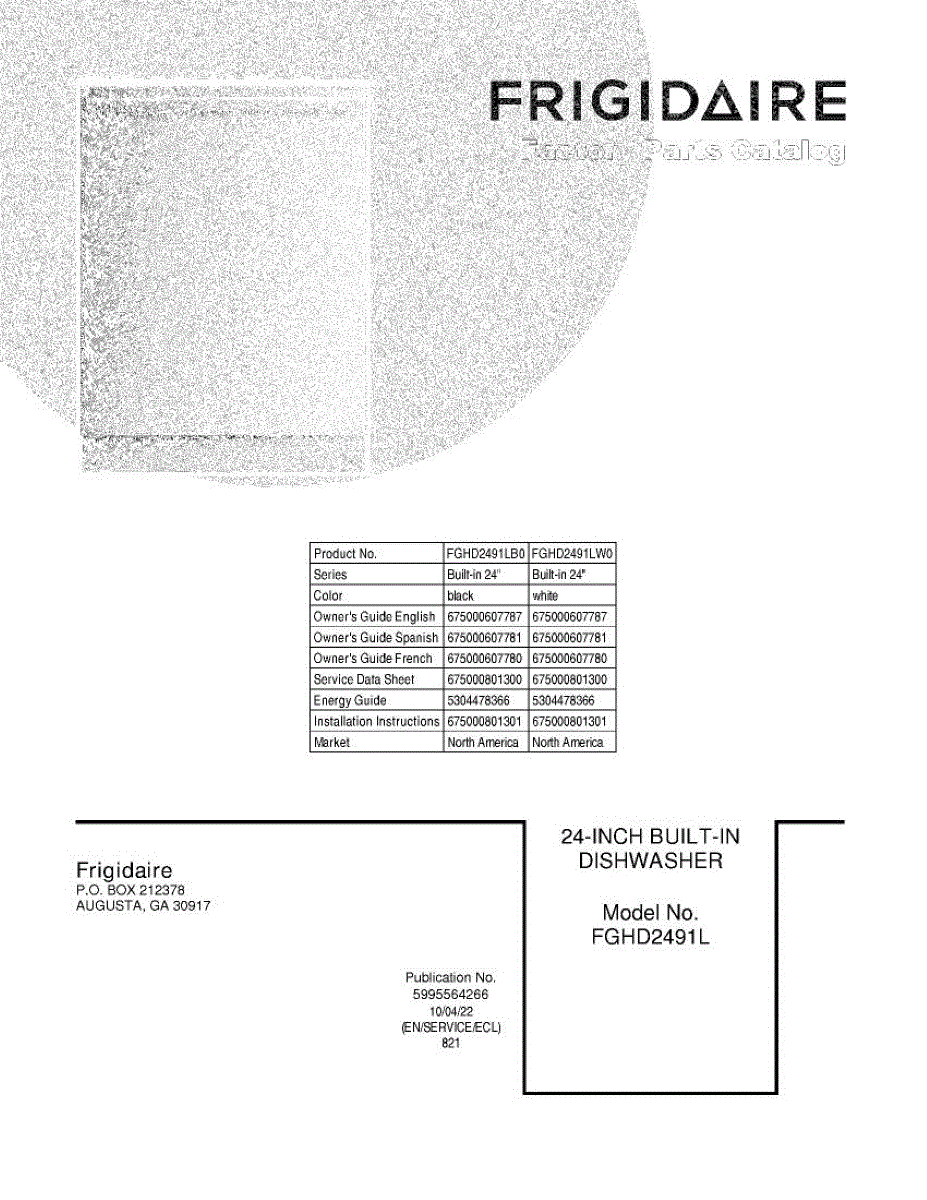 Parts for Frigidaire FGHD2491LB0: 01 - Cover Parts