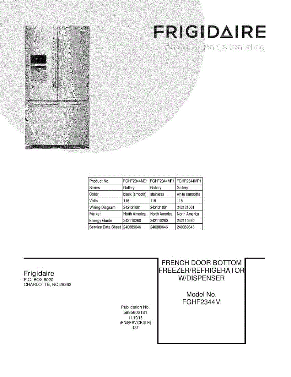 Parts for Frigidaire FGHF2344ME1: 01 - Cover Parts