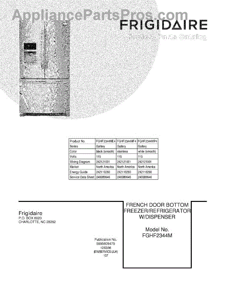 Parts for Frigidaire FGHF2344ME4: 01 - Cover Parts