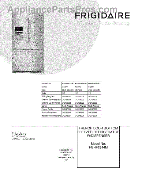 Parts for Frigidaire FGHF2344MF3: 01 - Cover Parts