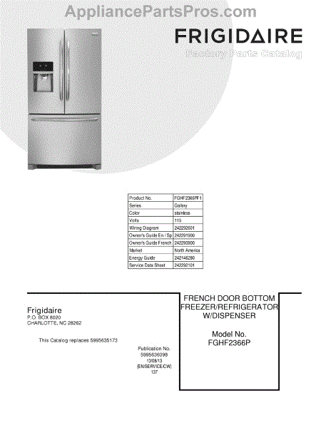 Parts for Frigidaire FGHF2366PF1: 01 - Cover Parts