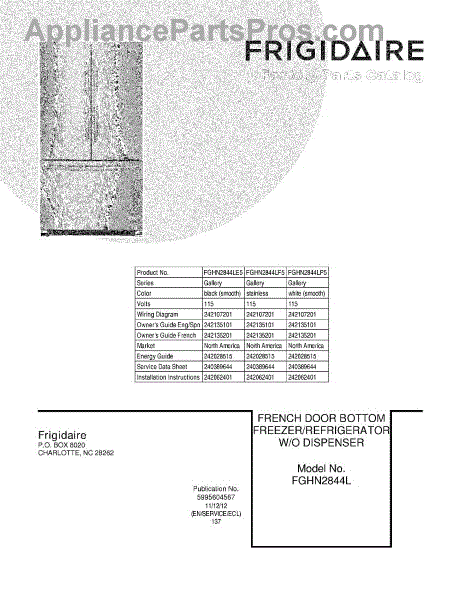 Parts for Frigidaire FGHN2844LF5: 01 - Cover Parts