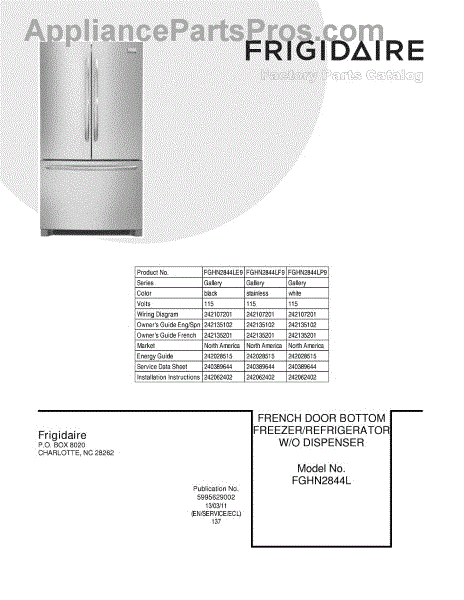 Parts for Frigidaire FGHN2844LP9: 01 - Cover Parts