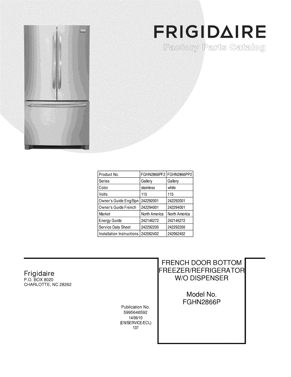 Parts for Frigidaire FGHN2866PP2: 01 - Cover Parts