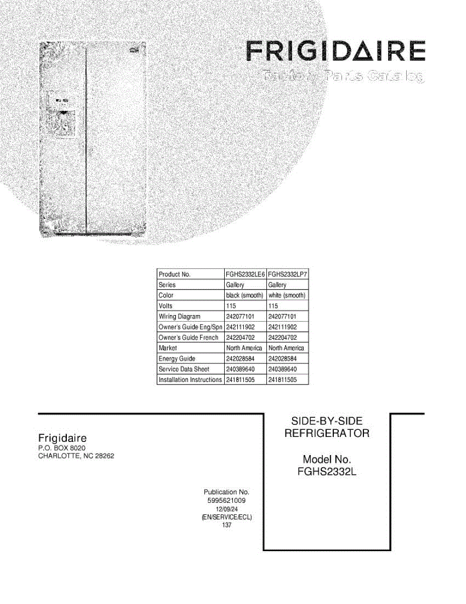 Parts for Frigidaire FGHS2332LE6: 01 - Cover Parts
