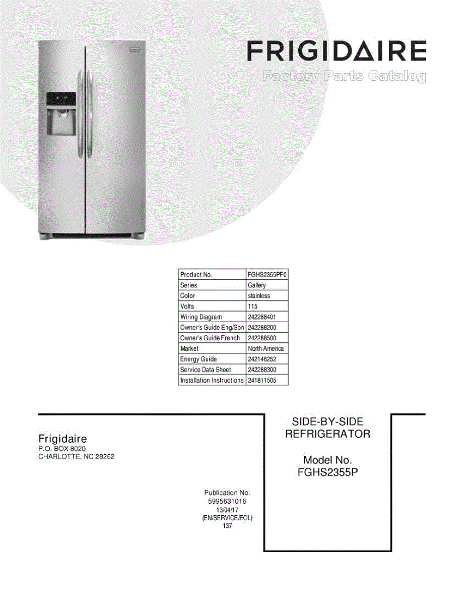Parts for Frigidaire FGHS2355PF0: 01 - Cover Parts